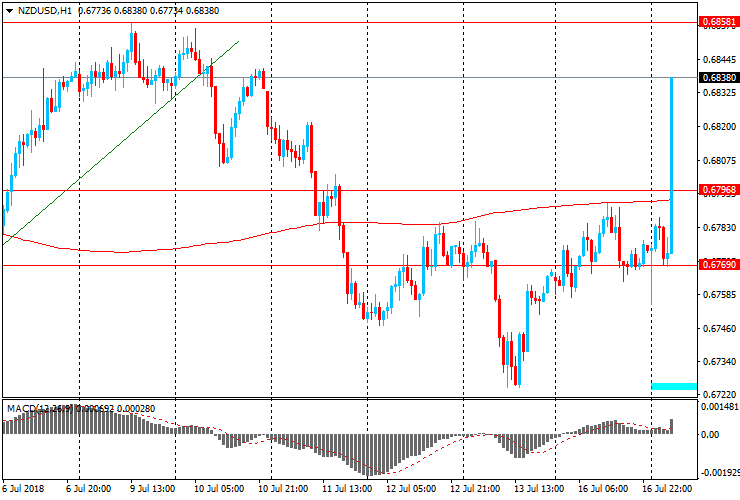 Пара NZD/USD выросла с $0,6770 до $0,6840. Основной поддержкой пары остается $0,6795 (максимум 5 июля, МА (200) Н1). Ближайшее сопротивление находиться на уровне $0,6860 (максимум 9-10 июля)