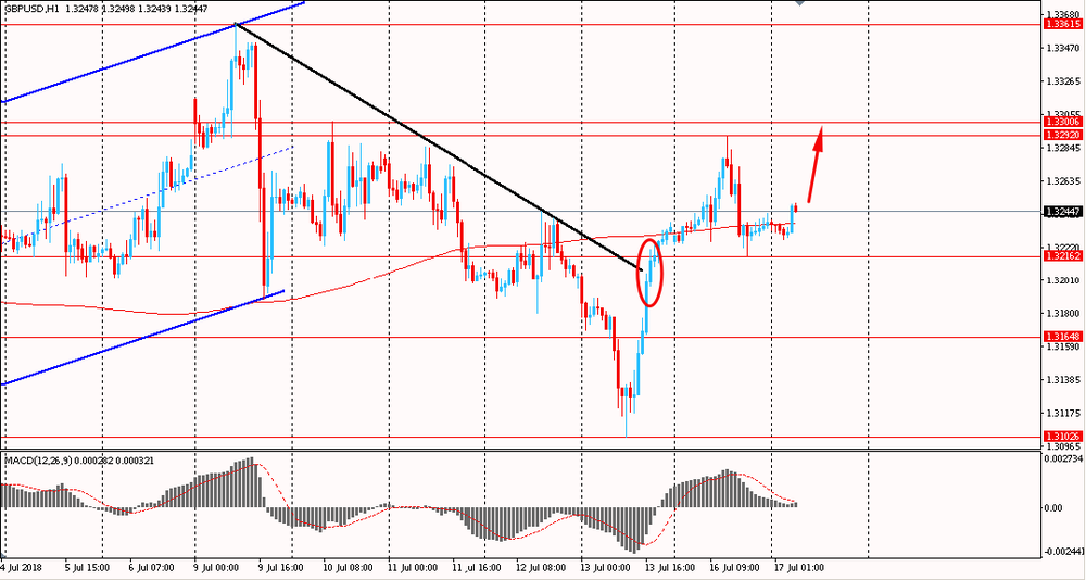 Пара GBP/USD сегодня утром выросла к $1.3245. В понедельник пара выросла, однако, во второй половине торгового дня упала, оттолкнувшись от сопротивления $1.3290. На данный момент пара тестирует линию сопротивления скользящей средней MA 200 H1 и пытается закрепиться выше этого мувинга. Напомним, в пятницу фунт уже пробил линию наклонного сопротивления от 9 июля. Обновление вчерашних максимумов окончательно закрепит позиции быков.
