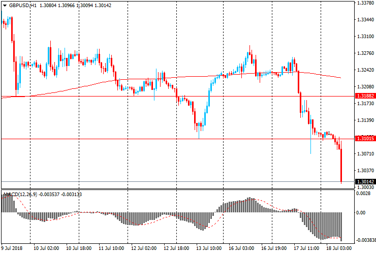 GBP/USD опустилась до $1,3014 с $1,3100. Ближайшая поддержка пары - $1,2905 (минимум 5 сентября 2017 года). Основным сопротивлением становиться уровень $1,3100 (минимум 13 июля).