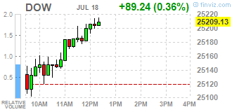 Большинство компонентов DOW в плюсе (16 из 30). Лидер роста - UnitedHealth Group Incorporated (UNH, +2,00%). Аутсайдер - NIKE, Inc. (NKE, -1,26%).