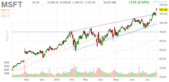 На текущий момент акции Microsoft Corp (MSFT) котируются по $107,45 (+2,92%)