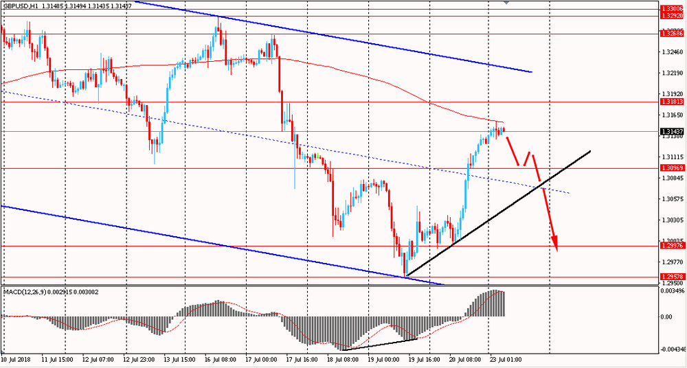 Пара GBP/USD сегодня утром выросла к $1.3155, продолжая пятничный подъем. В последний день прошлой торговой недели пара стремительно выросла и закрыла день на позитивной территории. На данный момент фунт все еще находится в данном восходящем импульсе и тестирует на прочность линию сопротивления скользящей средней MA 200 H1. Также стоит помнить, что общий тренд по паре медвежий и с 9 июля фунт находится в рамках общего нисходящего канала. По этой причине стоит дождаться окончания восходящего движения 2-х последних день, и если на тот момент пара все еще будет в общем нисходящем тренде, присматриваться к продажам.