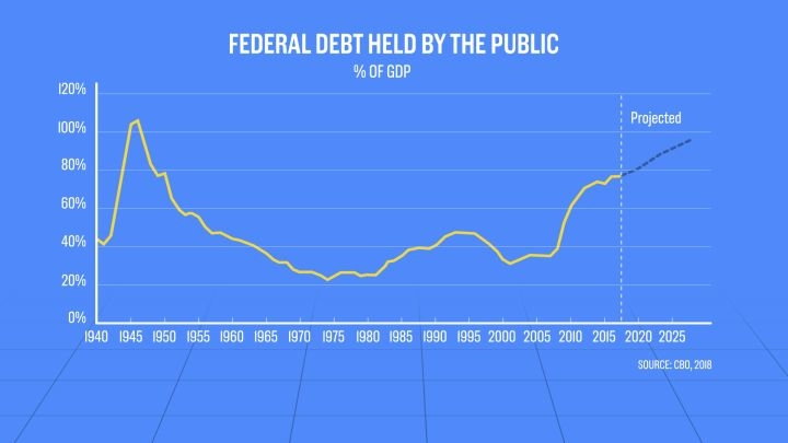 В июне Бюджетное управление Конгресса подсчитало, что госдолг, удерживаемый общественностью, вырастет с 78 процентов от ВВП в конце этого года до 96 процентов в 2028 году. Это будет означать самый высокий процент с 1946 года. В докладе предупреждается, что такой высокий и растущий долг из-за более высоких расходов и более низких доходов будет иметь "серьезные негативные последствия для бюджета и нации".