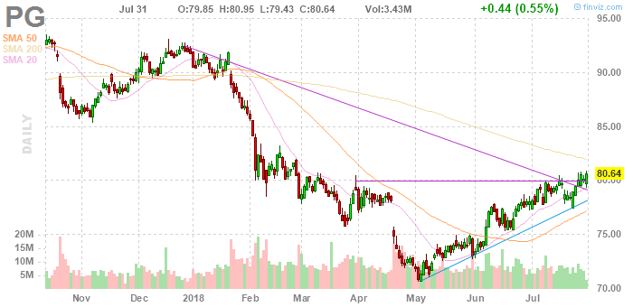 На текущий момент акции Procter & Gamble (PG) котируются по $80,64 (+0,55%)