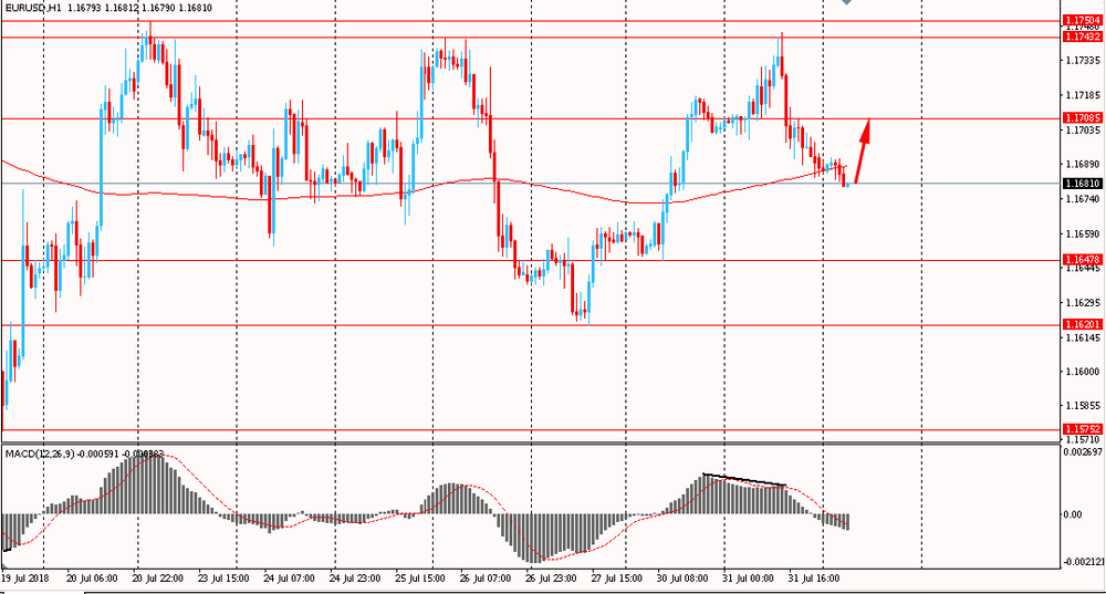 Пара EUR/USD сегодня утром торговалась в диапазоне $1.1680-90, оставаясь около вчерашних минимумов. Во вторник, в первой половине дня, пара выросла, но встретив сопротивление около месячных максимумов и сформировав медвежью дивергенцию, пара начала падать и закрыла день на отрицательной территории. На данный момент единая валюта продолжает оставаться под давлением и тестирует линию скользящей средней MA 200 H1. Стоит отметить, пока пара будет удерживаться выше данного мувинга, логичным будет присматриваться к покупкам евро на коррекциях. Если евро закрепиться ниже - будет развиваться медвежий сценарий.