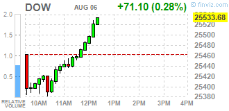 Большинство компонентов DOW в плюсе (21 из 30). Лидер роста - The Walt Disney Company (DIS, +2,03%). Аутсайдер - Intel Corporation (INTC, -1,67%).