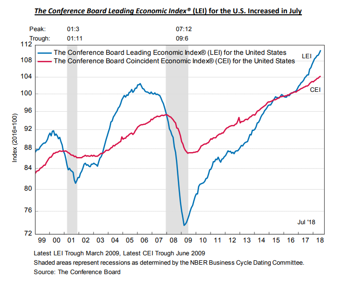 В июле индекс ведущих индикаторов (LEI) для США от Conference Board увеличился на 0,6 процента до 110,7 (2016 = 100), после повышения на 0,5 процента в июне и прироста на 0,1 процента в мае. Аналитики ожидали, что в июле индекс вырастет на 0,4 процента.