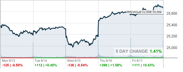 В четверг основные фондовые индексы США заметно выросли, чему способствовали высокие квартальные результаты Walmart и Cisco и ослабление торгового напряжения после того, как Китай и США заявили, что проведут переговоры в конце этого месяца. Определенное внимание инвесторов также привлекли данные по США. Министерство труда сообщило, что за неделю по 11 августа первичные обращения за пособием по безработице снизились на 2 000, до 212 000. Экономисты ожидали рост до 215 000 с 213 000, первоначально сообщенных за предыдущую неделю. Четырехнедельная скользящая средняя выросла на 1000, до 215 500.
