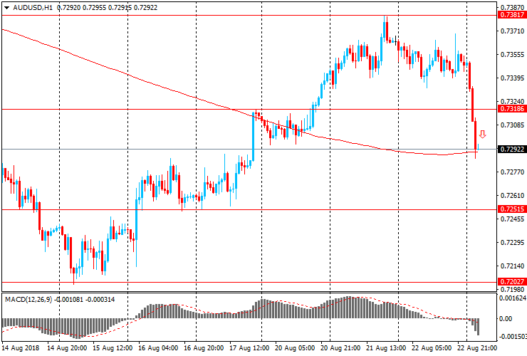 Пара AUD/USD упала с $0,7352 до $0,7290. Основной поддержкой пары становится $0,7250 (минимум 17 августа). Сопротивление находится на уровне $0,7320 (максимум 17 августа).