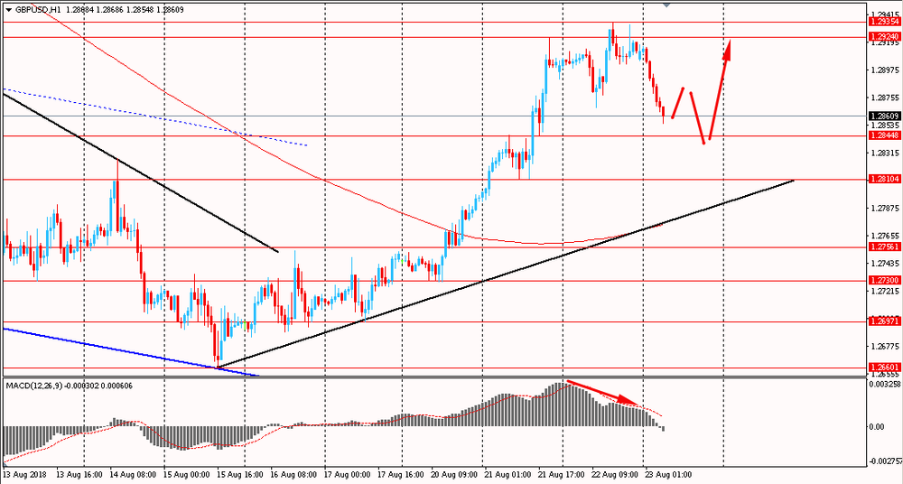 Пара GBP/USD сегодня утром упала к $1.2860, отступив от вчерашнего максимума. В среду пара в очередной раз выросла и закрыла уже пятый день подряд на положительной территории. Однако, уже сегодня, усиленная образованием медвежьей дивергенции на часовом графике по индикатору MACD, пара начала падать и стремится к линии поддержки от 15 августа. В любом случае стоит помнить, что британская валюта по-прежнему находится выше линии скользящей средней MA 200 H1 и выше наклонной поддержки тренда последних 6-ти дней. В данной ситуации наиболее уместным будет дождаться окончания коррекции и, в случае сохранения бычьего потенциала, присматриваться к новым покупкам.