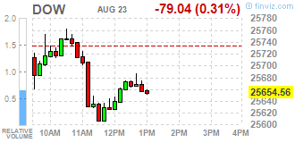 Большинство компонентов DOW в минусе (21 из 30). Лидер роста - The Home Depot, Inc. (HD, +0.64%). Аутсайдер - Caterpillar Inc. (CAT, -1.76%).