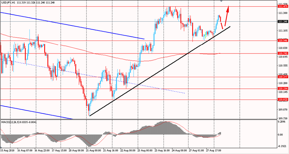 Сегодня утром пара USD/JPY выросла к Y111.35, полностью восстановившись после вчерашнего падения. В понедельник пара снижалась и закрыла день в красной зоне. Однако, сегодня, оттолкнувшись от линии поддержки общего восходящего тренда выросла и начала формировать очередное импульсное движение. Также, стоит помнить, что пара все еще находится выше линии скользящей средней MA 200 H1. В текущей ситуации быки все еще сохраняют контроль ситуации.