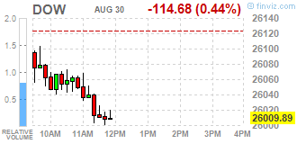 Большинство компонентов DOW в минусе (23 из 30). Лидер роста - Apple Inc. (AAPL, +0.47%). Аутсайдер - DowDuPont Inc. (DWDP, -2.07%).