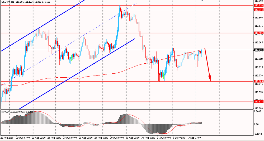 Сегодня утром пара USD/JPY торговалась в диапазоне Y110.90-15. В пятницу и понедельник пара торговалась разнонаправленно, корректируясь и закрывая дни около цены открытия. Помимо этого, пара уже несколько дней тестирует линию скользящей средней MA 200 H1. В текущей ситуации, пока пара удерживается ниже мувинга, необходимо искать точки входа на продажу на окончание коррекции, придерживаясь общего снижения пары с 30 августа.
