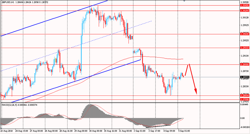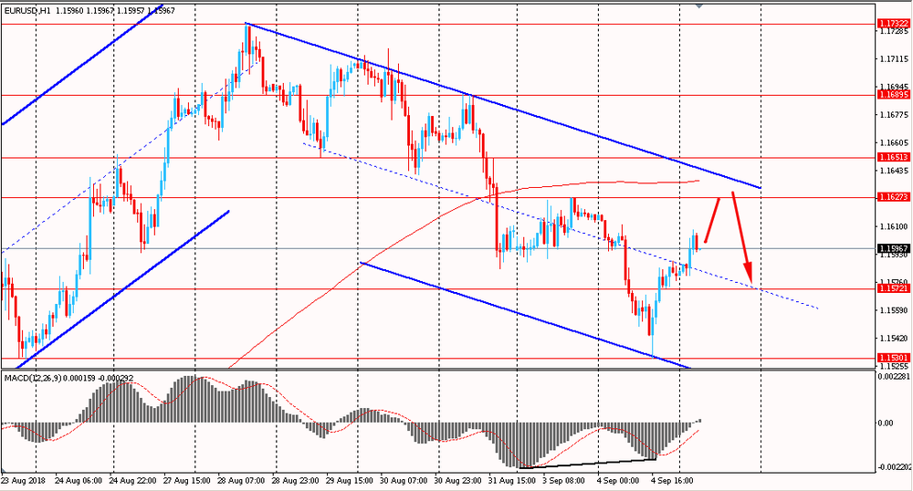 Пара EUR/USD сегодня утром выросла к $1.1605, восстанавливаясь после вчерашнего снижения. Во вторник пара падала и закрыла день на отрицательной территории. Однако, во второй половине дня единая валюта встретила сильную поддержку и усиленная образованием бычьей дивергенции по индикатору MACD немного выросла, развивая коррекционный подъём. На данный момент пара тестирует срединную линию даунтренда от 28 августа. Также, стоит отметить, что несмотря на коррекцию, пара по-прежнему находится ниже линии скользящей средней MA 200 H1, в нисходящем канале. Пока пара будет удерживаться в рамках данной тенденции - есть смысл присматриваться к продажам на окончание коррекционного движения.