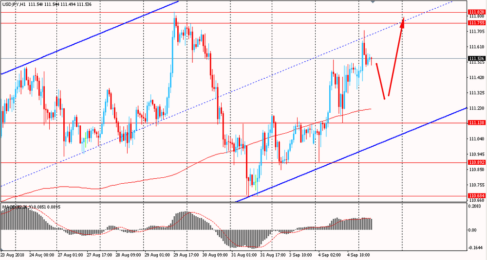 Сегодня утром пара USD/JPY выросла к Y111.70, продолжив вчерашний подъем. Во вторник пара, оттолкнувшись от линии поддержки глобального восходящего тренда на 4-х часовом графике, выросла и закрыла день на положительной территории. Помимо этого, паре удалось закрепиться выше линии скользящей средней MA 200 H1. На данный момент пара тестирует срединную линию глобального восходящего тренда. В текущей ситуации, пока пара удерживается ниже мувинга, в глобальном аптренде, необходимо искать точки входа на покупку.