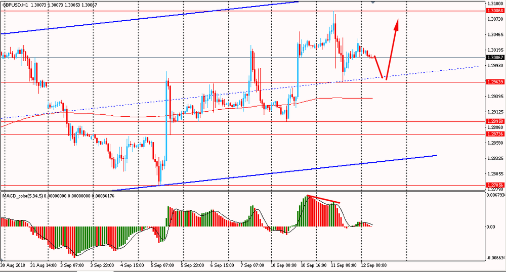 Пара GBP/USD сегодня утром торговалась в диапазоне $1.3005-20. Вчера пара, оттолкнувшись от линии сопротивления $1.3085, усиленная образованной медвежьей дивергенцией на индикаторе MACD, упала и впервые за много дней закрыла день в красной зоне. На данный момент британец вошел в корреляционную фазу. Однако, важно помнить, что GBP/USD продолжает оставаться в рамках общего восходящего тренда на 4-часовом графике, выше линии скользящей средней MA 200 H1. В данной ситуации логичным было бы присматриваться к новым покупкам на окончание начатой вчера коррекции.