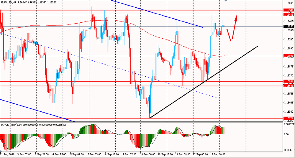 Пара EUR/USD сегодня утром торговалась в диапазоне $1.1625-40, оставаясь около вчерашнего максимума. В среду пара, оттолкнувшись от поддержки от 10 сентября, выросла и закрыла день на положительной территории. Помимо этого паре удалось пробить и закрепиться выше линии скользящей средней MA 200 H1, а на данный момент пара тестирует сопротивление глобального нисходящего даунтренда от 28 августа. Быки явно перехватили инициативу, и пока пара будет торговаться выше наклонной поддержки последних 3 дней, стоит присматриваться к покупкам с короткими целями.