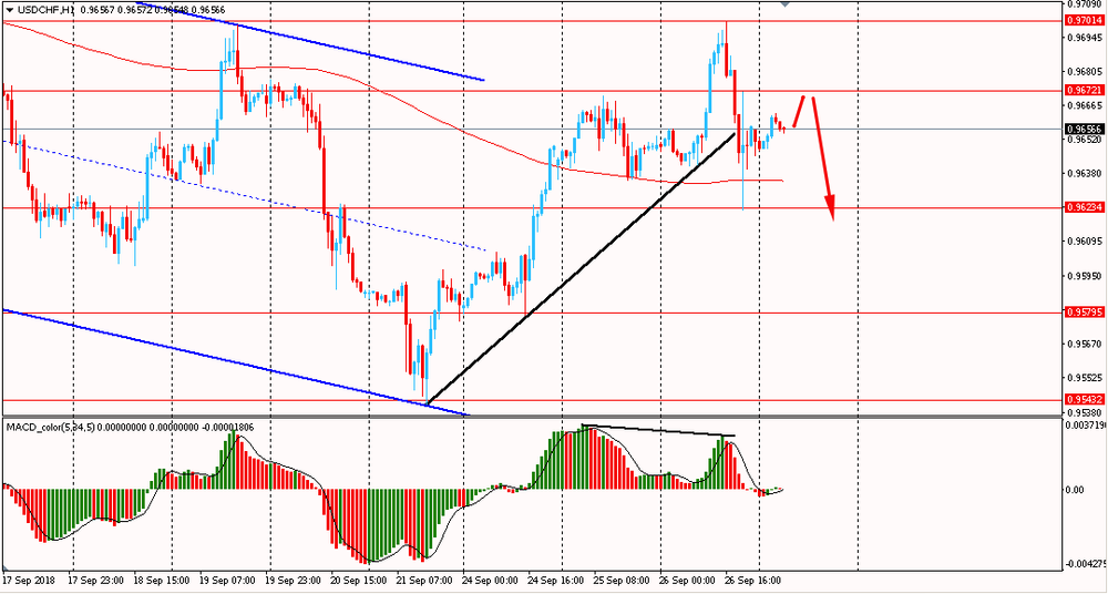 Пара GBP/USD сегодня утром упала к $1.3140, отступи от вчерашнего максимума. В среду пара весь день торговалась разнонаправленно и закрыла день без существенных изменений, около цены открытия дня. Усиленная образованием медвежьей дивергенции по индикатору MACD, пара находится под давлением и на данный момент пытается закрепиться ниже линии скользящей средней MA 200 H1. Помимо этого, фунт тестирует наклонную поддержку от 24 сентября. Если медведи сумеют закрепиться ниже этих уровней, по паре GBP/USD начнется формирование нового нисходящего импульса.