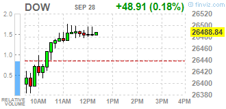 Большинство компонентов DOW в плюсе (19 из 30). Лидер роста - Intel Corporation (INTC, +3.38%). Аутсайдер - DowDuPont Inc. (DWDP, -1.52%).