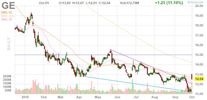 На текущий момент акции General Electric (GE) котируются по $12,54 (+11,10%)