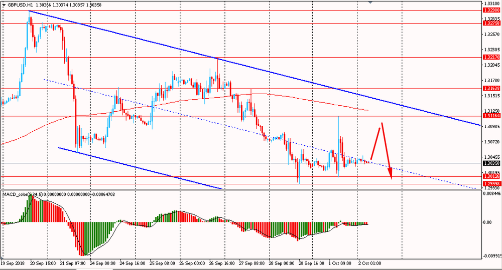 Пара GBP/USD сегодня утром торговалась в диапазоне $1.3030-45, оставаясь около вчерашнего минимума. В понедельник фунт торговался разнонаправленно, и закрыл день около цены открытия. Тем не менее, на текущий момент глобально пара остается под давлением, находясь в нисходящем канале от 20 сентября. Более того, британец торгуется ниже линии скользящей средней MA 200 H1. Медведи полностью контролируют ситуацию. В связи с этим, пока фунт находится в даунтренде, есть смысл присматриваться к новым продажам пары на коррекциях.