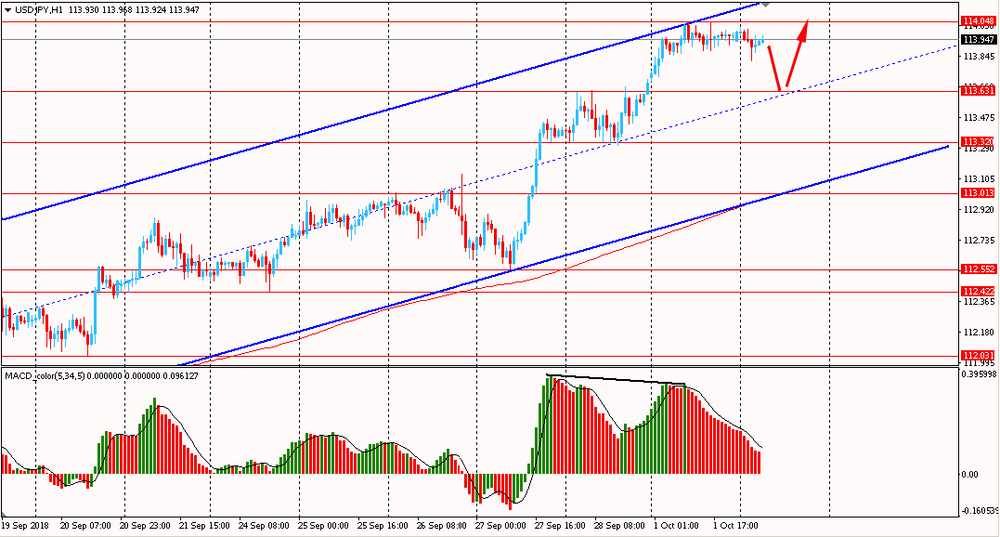Сегодня утром пара USD/JPY торговалась в диапазоне Y113.80-00, оставаясь около вчерашнего максимума. В понедельник пара выросла и закрыла день на положительной территории. На данный момент пара тестирует на прочность линию сопротивления канала и находится под полным контролем быков. Пока USD/JPY остается выше линии скользящей средней MA 200 H1, логичным будет присматриваться к покупкам пары на коррекциях. Однако, стоит отметить, что 14-ти дневный индекс относительной силы (RSI (14) на D1), находится выше уровня 70, что сигнализирует о возможной смене направления движения цены. К то му же, на часовом графике сформировалась медвежья дивергенция по индикатору MACD, что сигнализирует о возможном формирование глубокой коррекции или развороте цен.