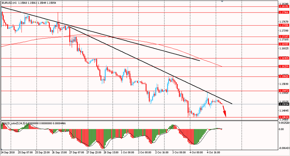 Пара EUR/USD сегодня утром торговалась в диапазоне к $1.1505-20, оставаясь около вчерашнего максимума. В четверг евро отступило от недельных минимумов и закрыло день на положительной территории. На данный момент пара пытается корректироваться. Однако, важно помнить, что EUR/USD находится в нисходящем тренде от 24 сентября и торгуется ниже линии скользящей средней MA 200 H1. Медведи полностью владеют ситуацией и пока евро будет находится ниже мувинга и линии сопротивления даунтренда, есть смысл присматриваться к новым продажам пары на окончание коррекции.