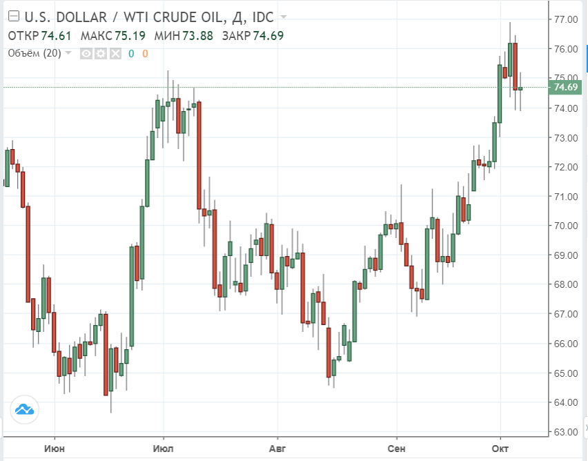 В настоящее время нефть марки West Texas Intermediate торгуется на уровне $74.69 (+0.11%) по сравнению с $74.34 до публикации данных.