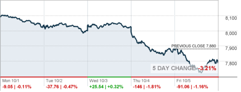 В пятницу основные фондовые индексы США заметно снизились на фоне роста доходности казначейских обязательств после того, как данные показали, что рост занятости замедлился в сентябре, в то время как повышение зарплаты было недостаточным для того, чтобы раздуть беспокойство по поводу роста инфляции или более быстрого повышения процентных ставок. Министерство труда сообщило, что уровень безработицы упал в сентябре до самого низкого уровня со времен войны во Вьетнаме, в то время как найм немного охладился, что стало последним показателем чрезвычайно жесткого рынка труда. Уровень безработицы снизился до 3,7% с 3,9% в августе, что является самым низким показателем с декабря 1969 года. В сентябре количество занятых в несельскохозяйственном секторе увеличилось с учетом сезонных колебаний на 134 000, это наименьший прирост за год и возможный знак, что работодатели начинают бороться за заполнение рабочих мест. Экономисты ожидали 185 000 новых рабочих мест и падение безработицы до 3,8%. Между тем, зарплата выросла на 0,3% относительно августа и на 2,8% годовых.