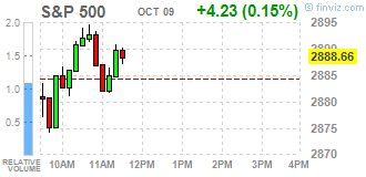 Большинство компонентов DOW в плюсе (17 из 30). Лидер роста - Walmart Inc. (WMT, +2.06%). Аутсайдер - Caterpillar Inc. (CAT, -2.31%).