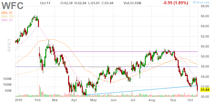 Согласно обнародованному отчету, прибыль компании Wells Fargo (WFC) по итогам третьего квартала 2018 финансового года (ФГ) достигла $1.13 в расчете на одну акцию (против $0.84 в третьем квартале 2017 ФГ), что оказалось ниже среднего прогноза аналитиков на уровне $1.17.