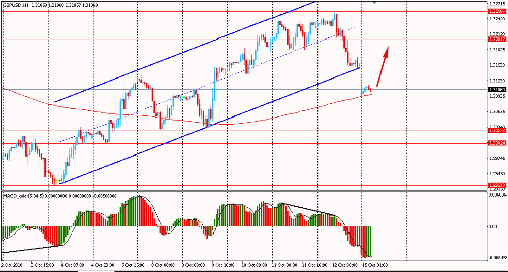 Пара GBP/USD сегодня утром упала к $1.3100, продолжив пятничное снижение. В последний день прошлой торговой недели фунт, оттолкнувшись от уровня $1.3250, усиленный образованием медвежьей дивергенции по индикатору MACD, также упал и закрыл день на отрицательной территории. На данный момент британец пытается закрепиться ниже линии поддержки восходящего канала от 4 октября, а также совершить пробой линии скользящей средней MA 200 H1. В данной ситуации все еще есть смысл продолжать присматриваться к новым покупкам пары после завершения данного коррекционного движения.
