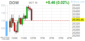 Большинство компонентов DOW в плюсе (21 из 30). Лидер роста - Walgreens Boots Alliance, Inc. (WBA, +1.97%). Аутсайдер - Apple Inc. (AAPL, -1.28%).