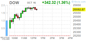 Большинство компонентов DOW в плюсе (29 из 30). Лидер роста - UnitedHealth Group Incorporated (UNH, +3.34%). Аутсайдер - Verizon Communications Inc. (VZ, -0.21%).