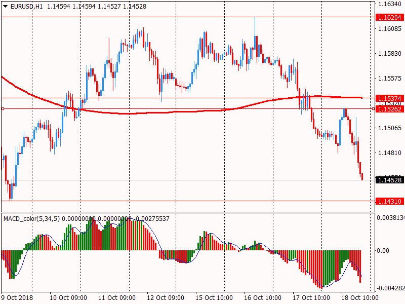 Евро существенно снизился против доллара США, приблизившись к минимуму 9 октября. Основным катализатором падения пары EUR/USD было повсеместное укрепление американской валюты, вызванное очередным бегством инвесторов от рисков, заявлениями представителей ФРС по поводу перспектив процентных ставок, а также обвалом китайского юаня против доллара США до самого низкого уровня с начала января 2017 года.
