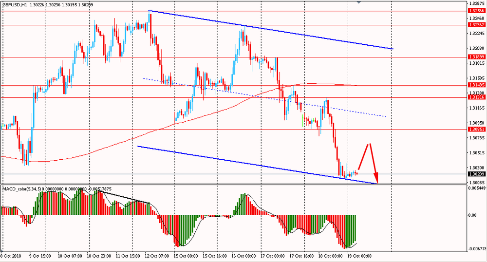 Пара GBP/USD сегодня утром торговалась диапазоне $1.3015-25, оставаясь около вчерашнего минимума. В четверг фунт также весь день падал, оттолкнувшись от срединной линии нисходящего канала, и закрыл день в красной зоне. Помимо этого, британец сумел окончательно закрепиться ниже линии скользящей средней MA 200 H1. На данной момент фунт остаётся под давлением под полным контролем медведей. В этом случае, пока пара находится ниже мувинга, лучше придерживаться южного направления, и на образование коррекции присматриваться к новым продажам британской валюты против доллара США.