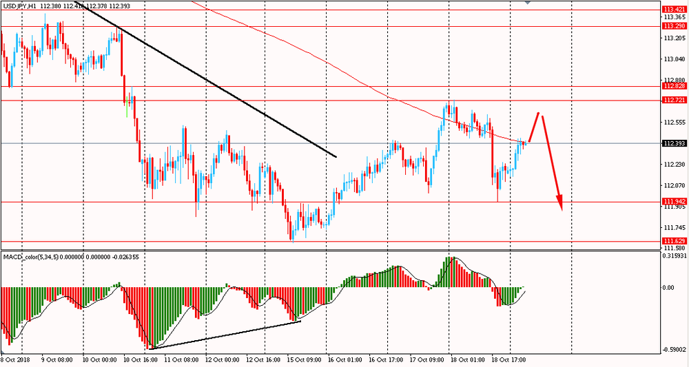 Сегодня утром пара USD/JPY выросла к Y112.40, восстанавливаясь со вчерашнего минимума. В четверг, оттолкнувшись от линии мувинга, пара упала и закрыла день на отрицательной территории. На данный момент USD/JPY продолжает корректироваться к общему тренду и тестирует линию скользящей средней MA 200 H1. При этом стоит отметить, что глобально пара остается в общем даунтренде. В такой ситуации, логичным будет присматриваться к продажам пары на окончание коррекционного движения.