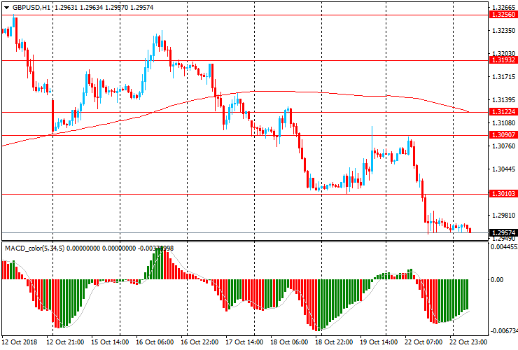 Пара GBP/USD сегодня утром торговалась в узком диапазоне $1.2960-70, после резкого снижения в ходе торгов понедельника. Пара пробила основную поддержку $1.3010 (минимум 18-19 октября), которая стала ближайшим сопротивлением. Фунт сумел окончательно закрепиться ниже линии скользящей средней MA 200 H1 и на данный момент остается под полным контролем медведей. В этом случае стоит присматриваться к новым продажам британской валюты против доллара США.