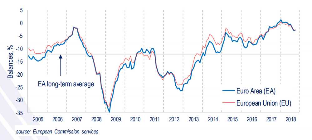 Кроме того, отчет показал, что индекс потребительского доверия для всего Европейского Союза вырос на 0,1 пункта, до -2,7 пункта.
