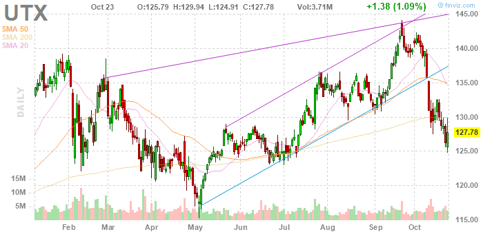На текущий момент акции United Technologies (UTX) котируются по $127,78 (+1,09%)