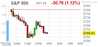 Большинство компонентов DOW в минусе (21 из 30). Лидер роста - The Boeing Company (BA, +3.61%). Аутсайдер - United Technologies Corporation (UTX, -3.58%).