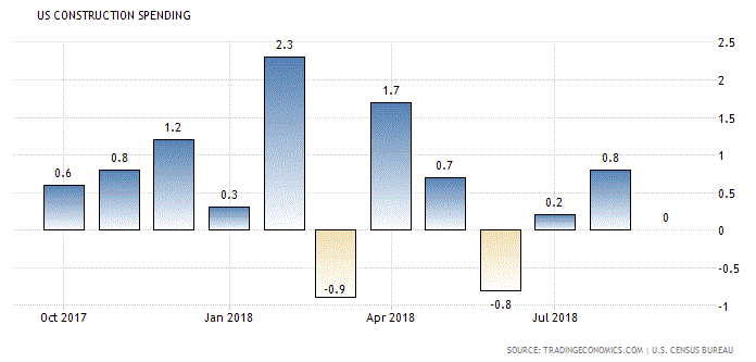 Расходы на общественные строительные проекты упали на 0,9 процента в сентябре, самое большое падение с августа 2017 года, после снижения на 2,2 процента в августе. Расходы на федеральные правительственные строительные проекты упали на 6,8 процента, больше всего с июня 2017 года, после роста на 5,3 процента в августе. Инвестиции в государственные и местные государственные строительные проекты упали на 0,5 процента в сентябре после скачка на 2,0 процента в августе.