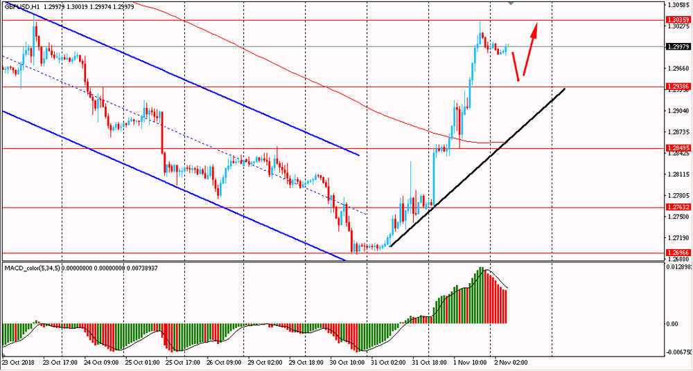 Пара GBP/USD сегодня утром резко выросла к $1.2845, продолжив вчерашний подъем. В среду пара также весь день поднималась и смогла закрыть день на положительной территории. Более того, фунт пробил линию сопротивления нисходящего канала от 16 октября и на данный момент приближается к линии скользящей средней MA 200 H1. Несмотря на формирование коррекции, медведи глобально все еще удерживают ситуацию. Поэтому лучше придерживаться южного направления пока пара ниже мувинга, и на окончание коррекции присматриваться к новым продажам фунта против американского доллара.
