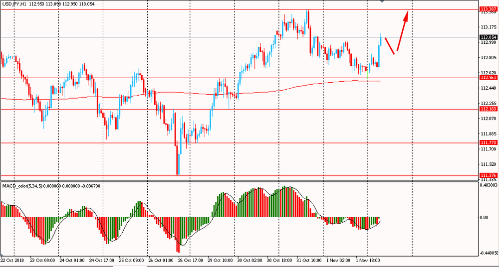 Сегодня утром пара USD/JPY выросла к Y113.05, отступив от вчерашнего минимума. В среду и четверг пара корректировалась и закрыла день в красной зоне. Однако уже сегодня пара начала формировать новый восходящий импульс. Глобально USD/JPY все еще остается выше линии скользящей средней MA 200 H1. Быки удерживают инициативу и в этой ситуации, логичным будет присматриваться к покупкам пары на формирование коррекционного движения.