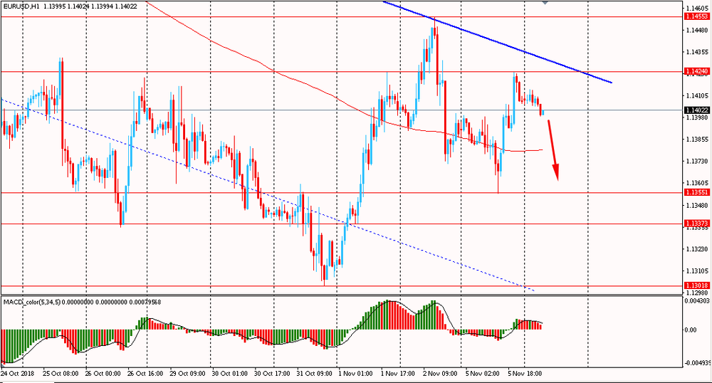 Сегодня утром пара EUR/USD торговалась в диапазоне $1.1400-10, торгуясь около вчерашнего максимума. В понедельник пара торговалась разнонаправленно и закрыла день небольшим подъемом. В то же время единая валюта остается ниже наклонной линии нисходящего канала. На данный момент евро пытается закрепиться ниже линии скользящей средней MA 200 H1. Таким образом пара EUR/USD по-прежнему остается в рамках общего даунтренда от 16 октября. Медведи все еще владеют инициативой, поэтому лучше придерживаться южного направления, и на окончание коррекции присматриваться к новым продажам евро против американского доллара.