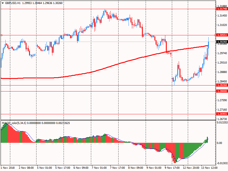 Пара GBP/USD ускорила свой рост и готовится зафиксировать крупнейшее сессионное повышение с января. Поддержку фунту оказало сообщение издания The Telegraph о том, что премьер-министр Мэй представит черновой вариант соглашения по Брекзиту уже завтра.