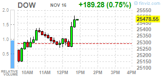 Большинство компонентов DOW в плюсе (17 из 30). Лидер роста - Cisco Systems, Inc. (CSCO +2.88%). Аутсайдер - The Boeing Company (BA, -2.86%).