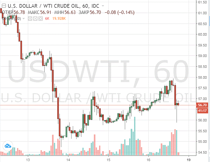 В настоящее время нефть марки West Texas Intermediate торгуется на уровне $56.70 (+0.28%) по сравнению с $56.78 до публикации данных.