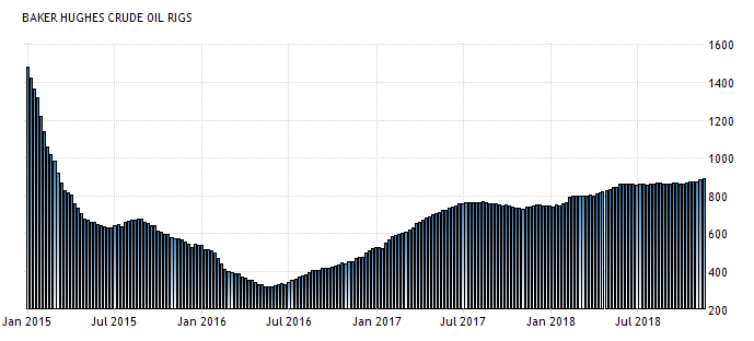 Отчет нефтесервисной компании Baker Hughes показал: с 10 по 16 ноября количество активных буровых установок по добыче нефти в США увеличилось на 2 штуки, и составило 888 единиц (максимум с начала марта 2015 года). Напомним, годом ранее количество установок составляло 738 штук. Количество установок по добыче газа снизилось на 1 штуку, составив 194 единицы. Общее число буровых установок (газовых, нефтяных и прочих) выросло на 1 штуку, и составило 1082 штуки.